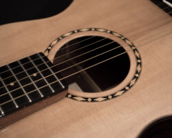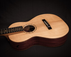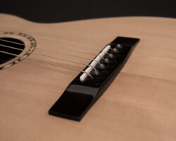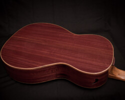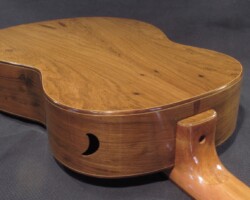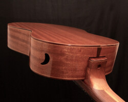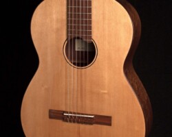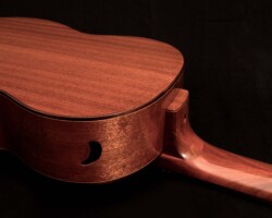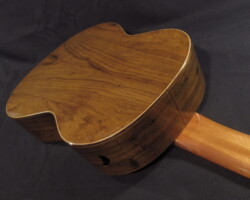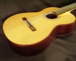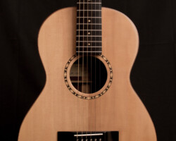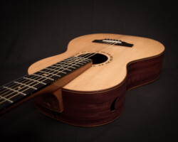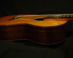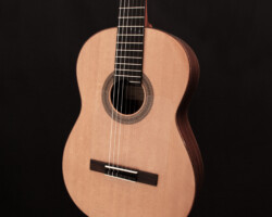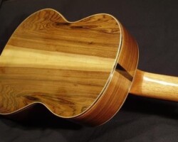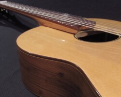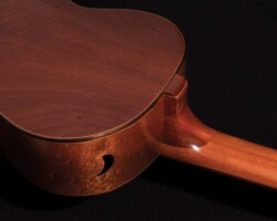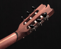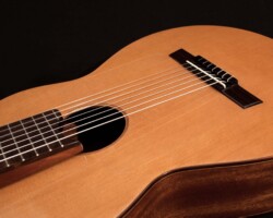 The steel-string acoustic guitars I build are based on Martin 00 models. They have a body size very similar to that of a classical guitar and the neck joins at the 12th fret. The neck of this guitar is also based on the Stauffer-Legnani design, and the string action can be adjusted.