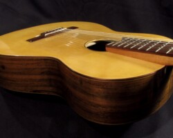 Guitar based on traditional Spanish models, this guitar is built in a deluxe version with traditional woods and in a more economical and sustainable version with alternative woods such as Guayubira, Guayacan, Bolivian rosewood, mahogany, etc.